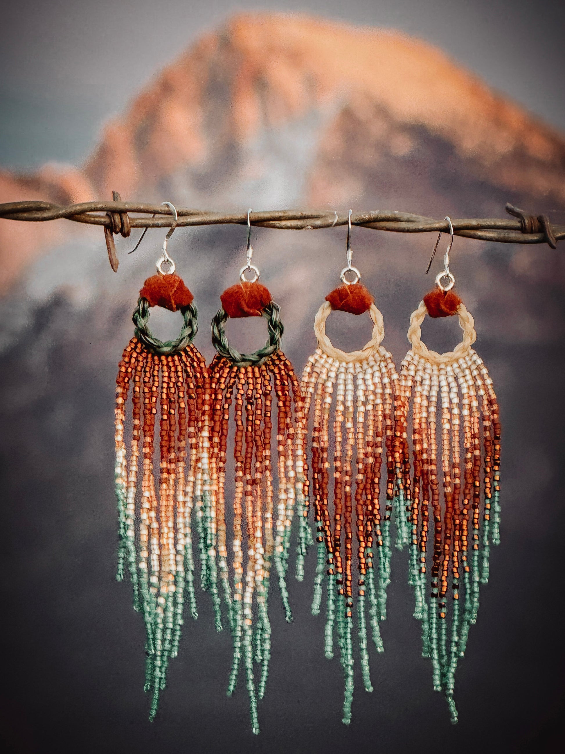All of our seed bead earrings are handmade using needle and thread. DO NOT cut the thread.