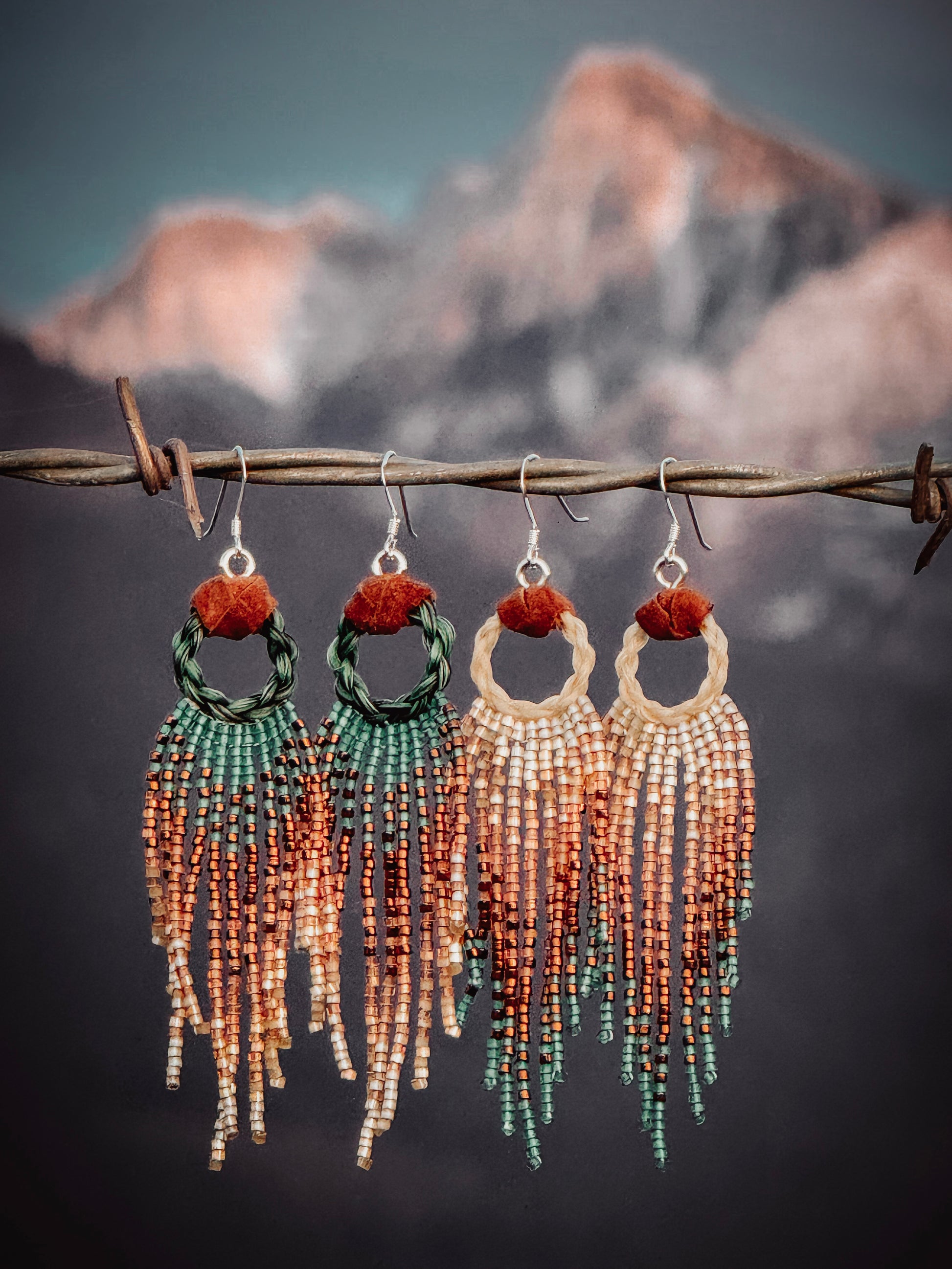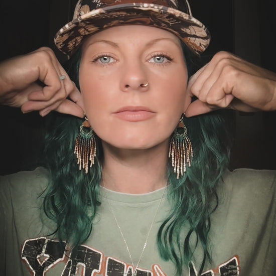 All of our seed bead earrings are handmade using needle and thread. DO NOT cut the thread.